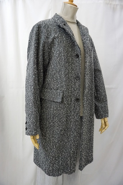 WYTE/ループニードルパンチコートは、オリジナルテキスタイルです。(宝永株式会社の宇佐美氏と共同開発)交織シャンブレーのクラシックなフラノ素材を特殊な針を使うことで、緯糸をループ状に引き出し元生地がフラノとは思えない独特な表情に仕上げています。